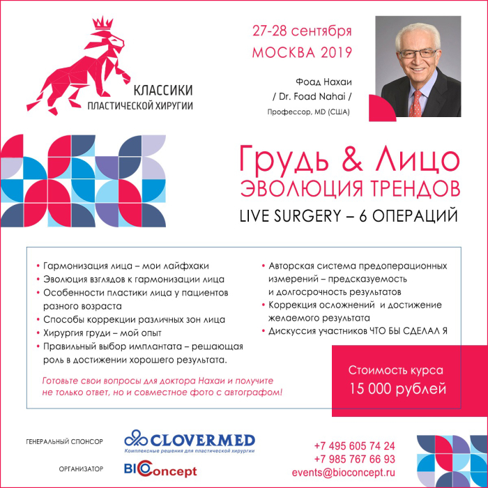 27-28 сентября приглашаем вас на обучающий курс «Классики пластической хирургии «Грудь & лицо. Эволюция трендов» с участием доктора с мировым именем, профессора Фоад Нахаи (США).