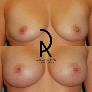 Пациентка доктора Амрама Пайтяна до и после увеличения груди