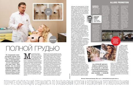 Хореограф и мать 8-летнего сына Лейла Багирова обратилась к хирургу с целым набором проблем, в числе которых асимметрия, опущение груди, неудовлетворяющая форма ареол и тубулярность. Благодаря профессиональному мастерству Александра Грудько все перечисленные недостатки были устранены в ходе одной-единственной операции. Подробнее читайте в октябрьском номере журнала ALLURE.