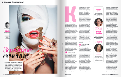 В статье «Золотое сечение» доктор раскрывает причины, по которым женщины идут в операционную, подчеркивает различия между российскими и иностранными пациентками и, конечно, рассказывает тенденциях в эстетическом улучшении внешности и о самых востребованных пластических операциях. Более того, хирург делится с читательницами знаниями о наиболее популярных видах бьютификации у знаменитых insta-див. Заинтересовало? Открывайте страницу 208!