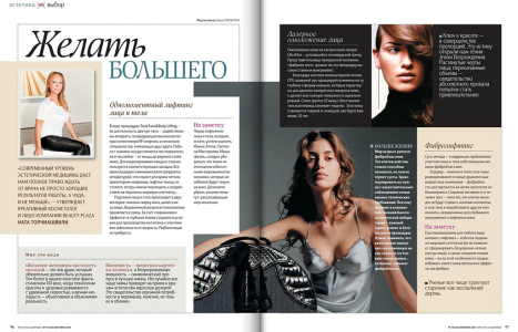 В последнем выпуске журнала «Красота и здоровье» ведущий косметолог клиники Beauty Plaza Ната Топчиашвили рассказывает об особенностях трехчасовой процедуры Total Face & Body Lifting, в ходе которой выполняется одномоментный лифтинг лица и тела. Специалист в области красоты также дает рекомендации и советы, которые пригодятся любой женщине, решившей пройти процедуру подтяжки лица.