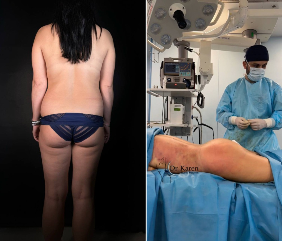 Пациентка доктора Карена Пайтяна до и после липофилинга ягодиц